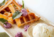 160 г • Вафли с шариком мороженого и йогуртом из лесных ягод