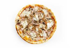 300 г • Ветчина к/в, грибы шампиньоны, соус чесночный, маринад для пиццы, лук карамелизированный, сыр Моццарелла, соус для пиццы