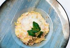 275 г • Сливки, яйцо, бекон, сыр Пармезан, сыр Джугас, петрушка