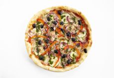 355 г • Ветчина, болгарский перец, маслины, цукини, маринованный красный лук, соус Песто