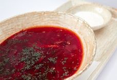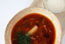 Красный борщ с говядиной и сметаной