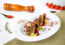 170 г • Баклажан запеченный, паста из грецкого ореха с гранатом, соус гранатовый, гранат